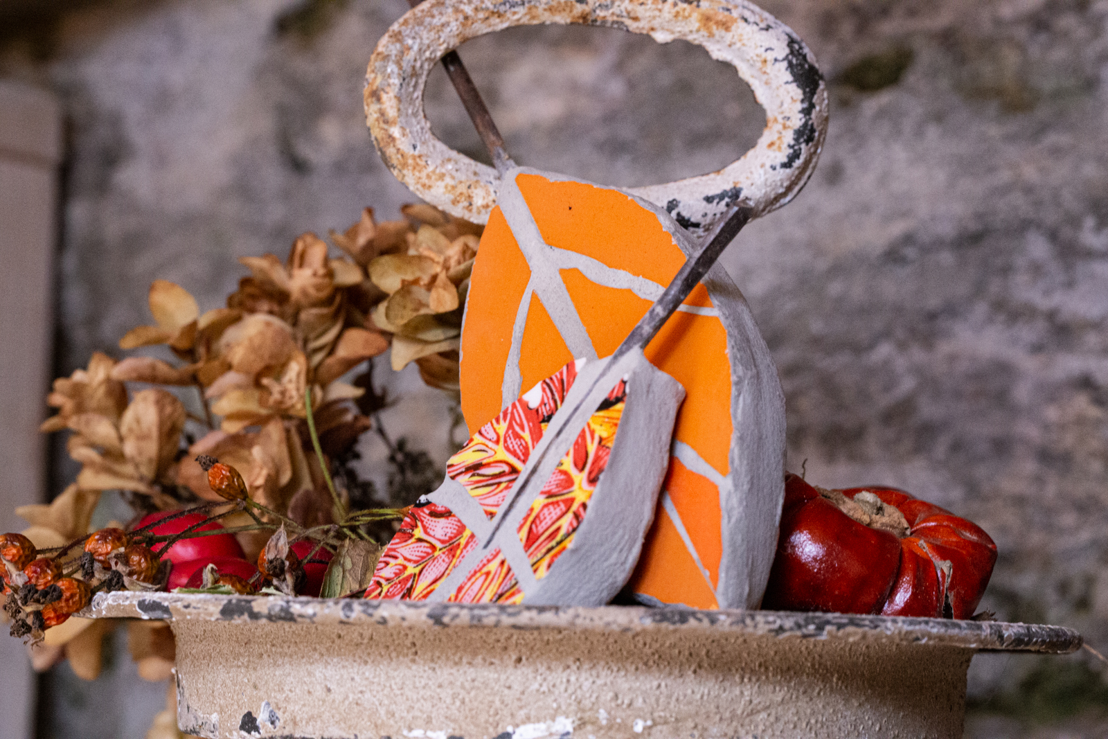 … so werden alte, ausrangierte Fliesen zu neuem Leben erweckt, die zu Bruch gegangene Lieblingstasse, das ausgediente Geschirr, ein verbeulter Kaffeelöffel oder ein uriges Metallstück erscheinen – eingearbeitet in ein Mosaik – in neuem Licht. Meiner (und Ihrer) Phantasie sind hier keine Grenzen gesetzt